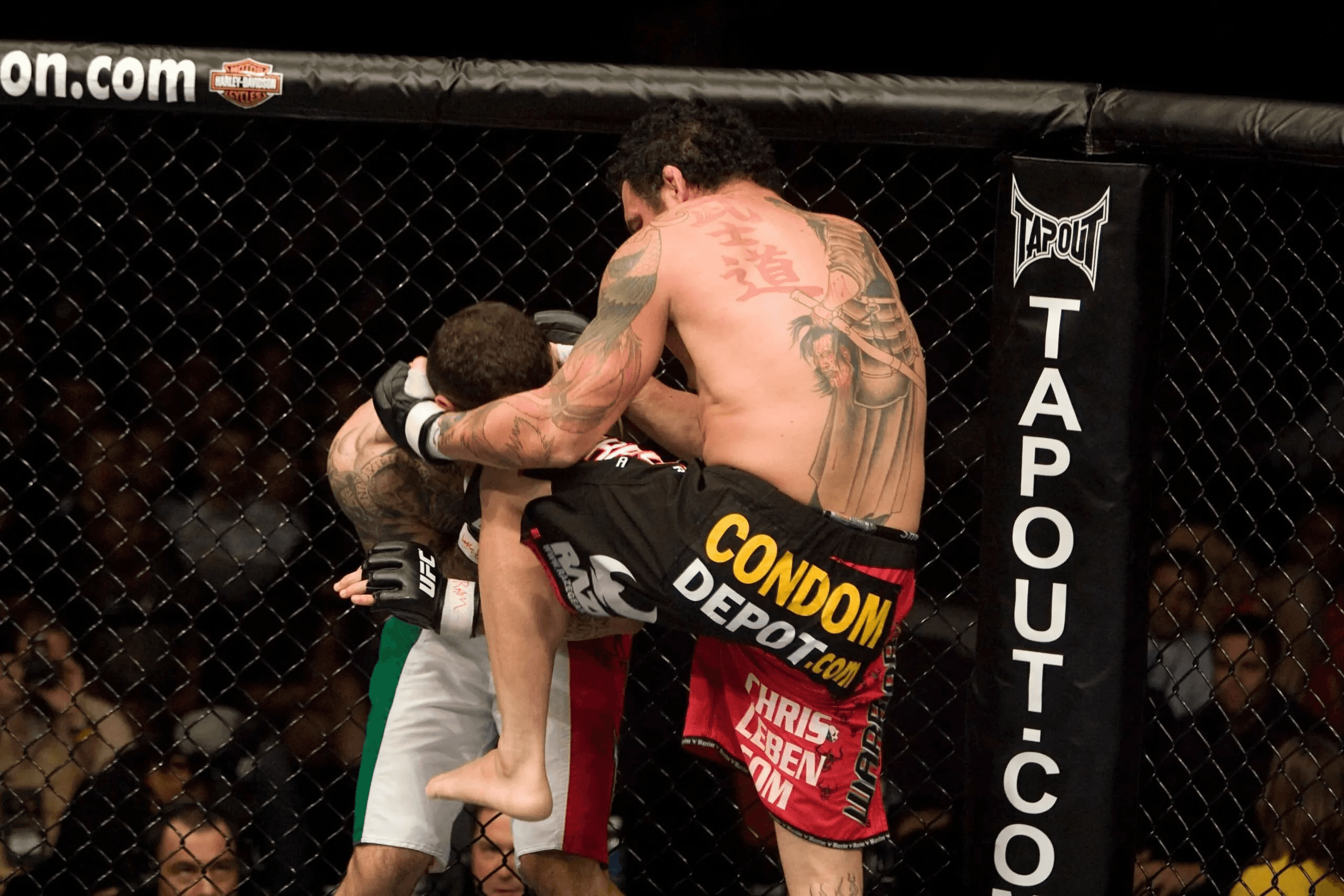 During the free-sponsorship era, top athletes could earn six-figure sums from endorsement deals — often more than their fight purses. Fighters’ gear turned into billboards plastered with dozens of patches, including quirky logos like Condom Depot.